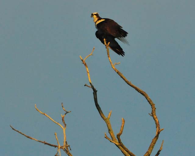 I managed to make it up to Annsville Circle to check out the eagles. The bird flying over the eastern estuary was definitely an osprey. I got very excited when I thought an immie eagle was overhead at the Paddlesport Park. It was just another one of those numerous osprey sitings. This time the bird was playing talon tag with a seagull. I included a few pictures of an osprey from a couple of weeks ago. These are probably all the same bird. The really overexposed picture was printed on water color paper and looked like a painting. The glossy print and internet versions do not do the photography justice.