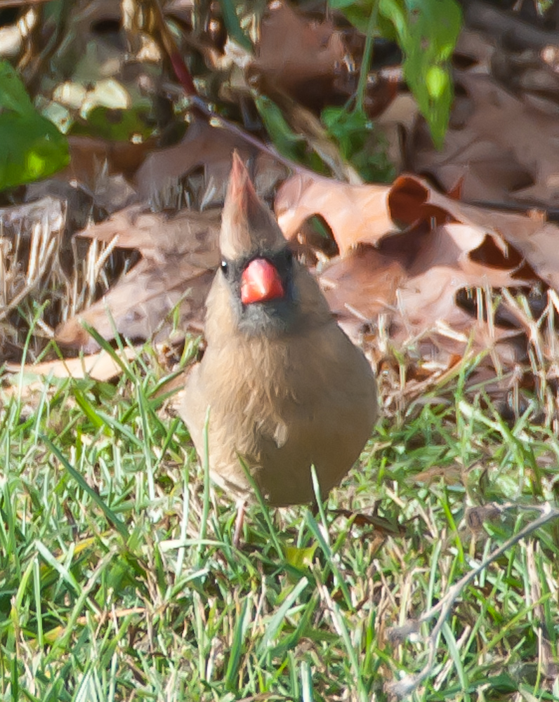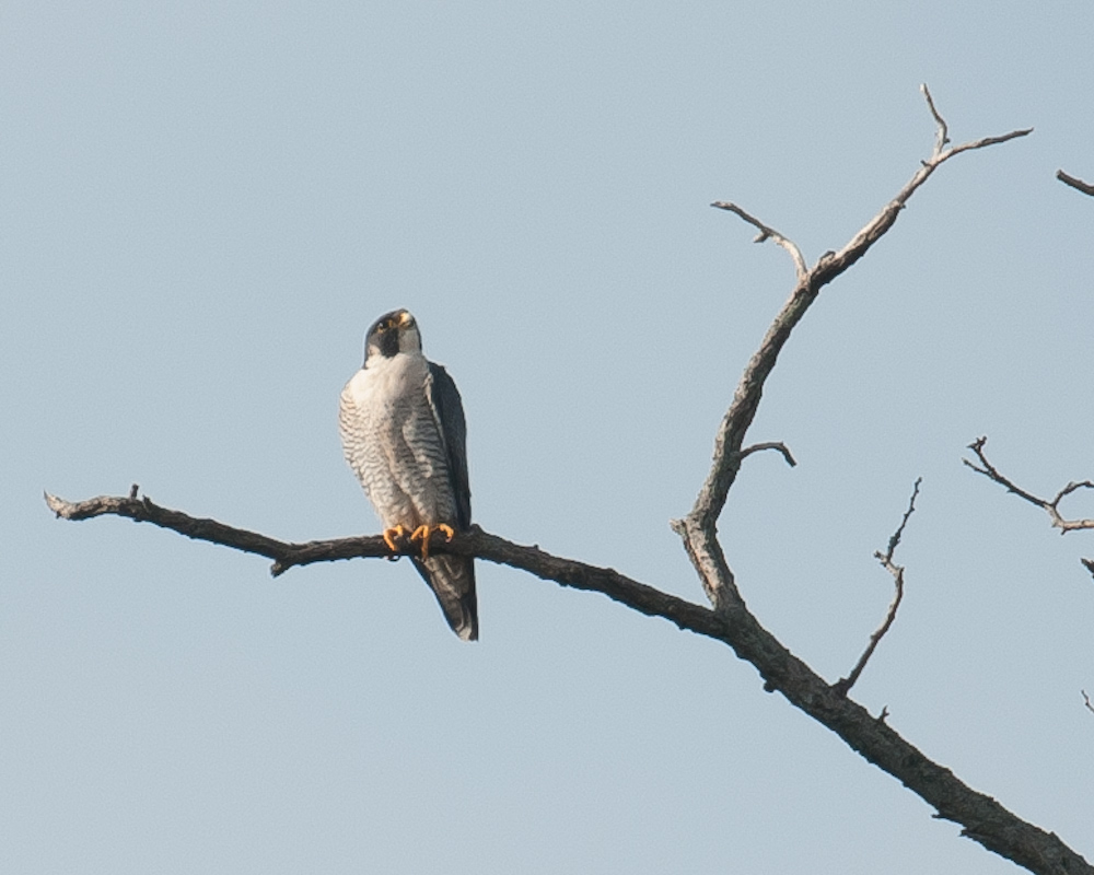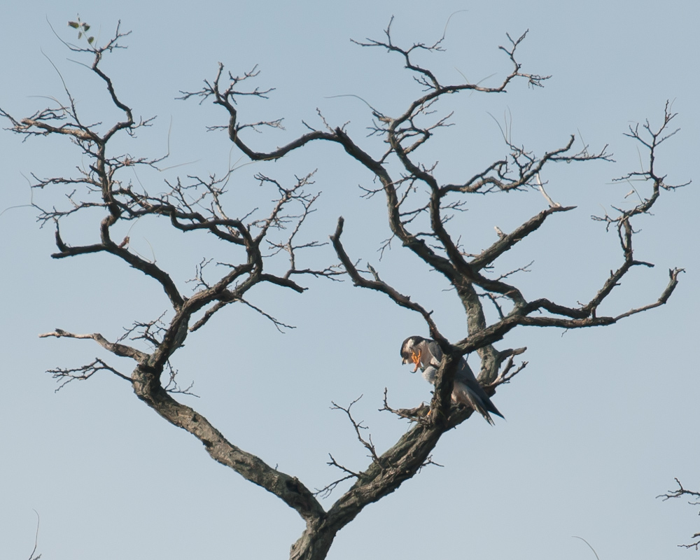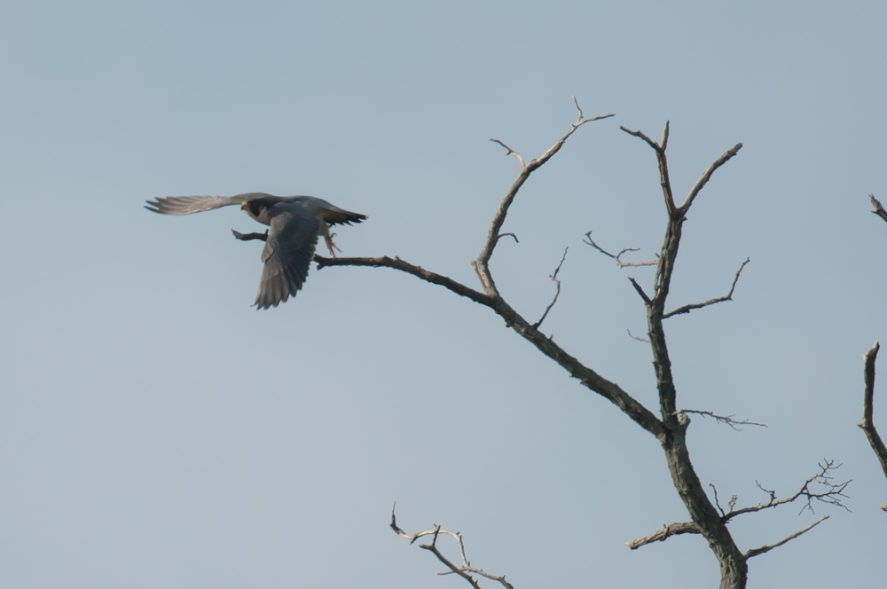 The weather was glorious and the birds enjoyed themselves. Every bird except the peregrine falcon was at the bird feeders at the nature center. The peregrine was guarding the park at the entrance.