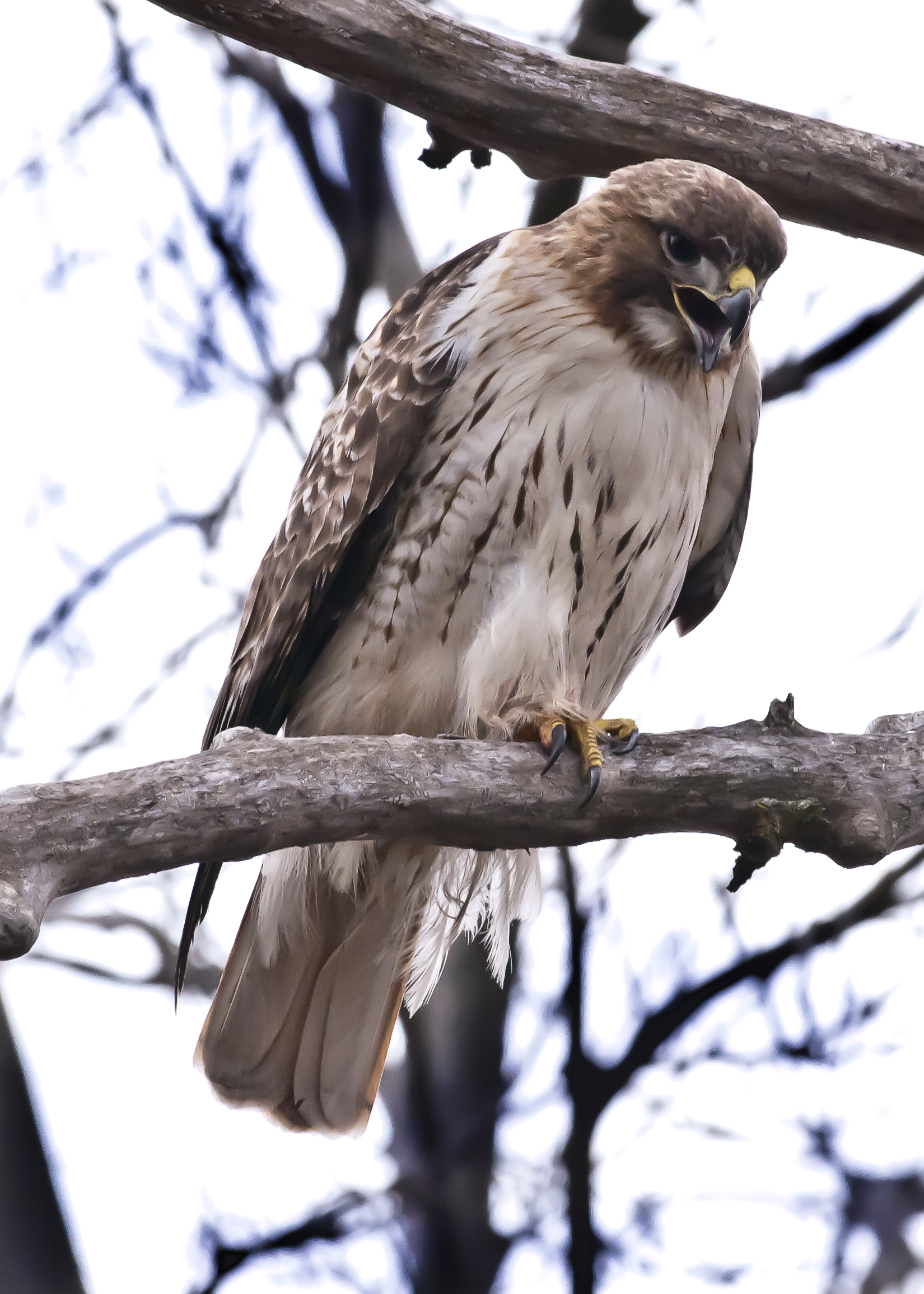 Saw Mill River Audubon’s Croton Point Nature Center Project Feeder Watch continues. I did make it to a few other sites along the river, but the action remains at the park. Our local eagles are still around, but the males are really the only ones fishing. Our red tail hawk is by himself for awhile as his mate is hopefully incubating. He showed up twice at the nature center last week. He wanted that big, fat rat. He called for it. He probably got it because when we saw him later in the morning his beak had signs of a meal. The starlings and mixed flock of about 100 birds is cleaning out the feeders on a regular basis.
