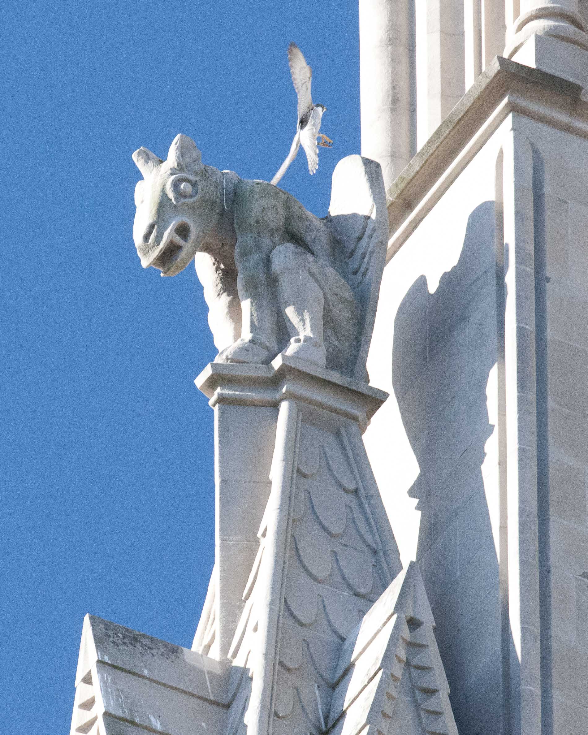 Saw Mill River Audubon’s Project FeederWatch at Croton Point Nature Center ended. The large mixed flock of red-winged blackbirds, grackles, cowbirds and starlings came to say goodbye. All the birds now have mates. I was also fortunate enough to finally see an American tree sparrow. All the other species also stopped by. The finches showed themselves along with the woodpeckers, titmice, chickadees and nuthatches. Easter brought visits to Manhattan and Jersey City to check out the peregrine falcons. The good news is that both Riverside Church and Jersey City are sitting on eggs. Unfortunately, there will be no falcons at 55 Water Street this year. Construction around the scrape began just before mating season and is continuing. No sign of the falcons. They may have gone to Brooklyn.