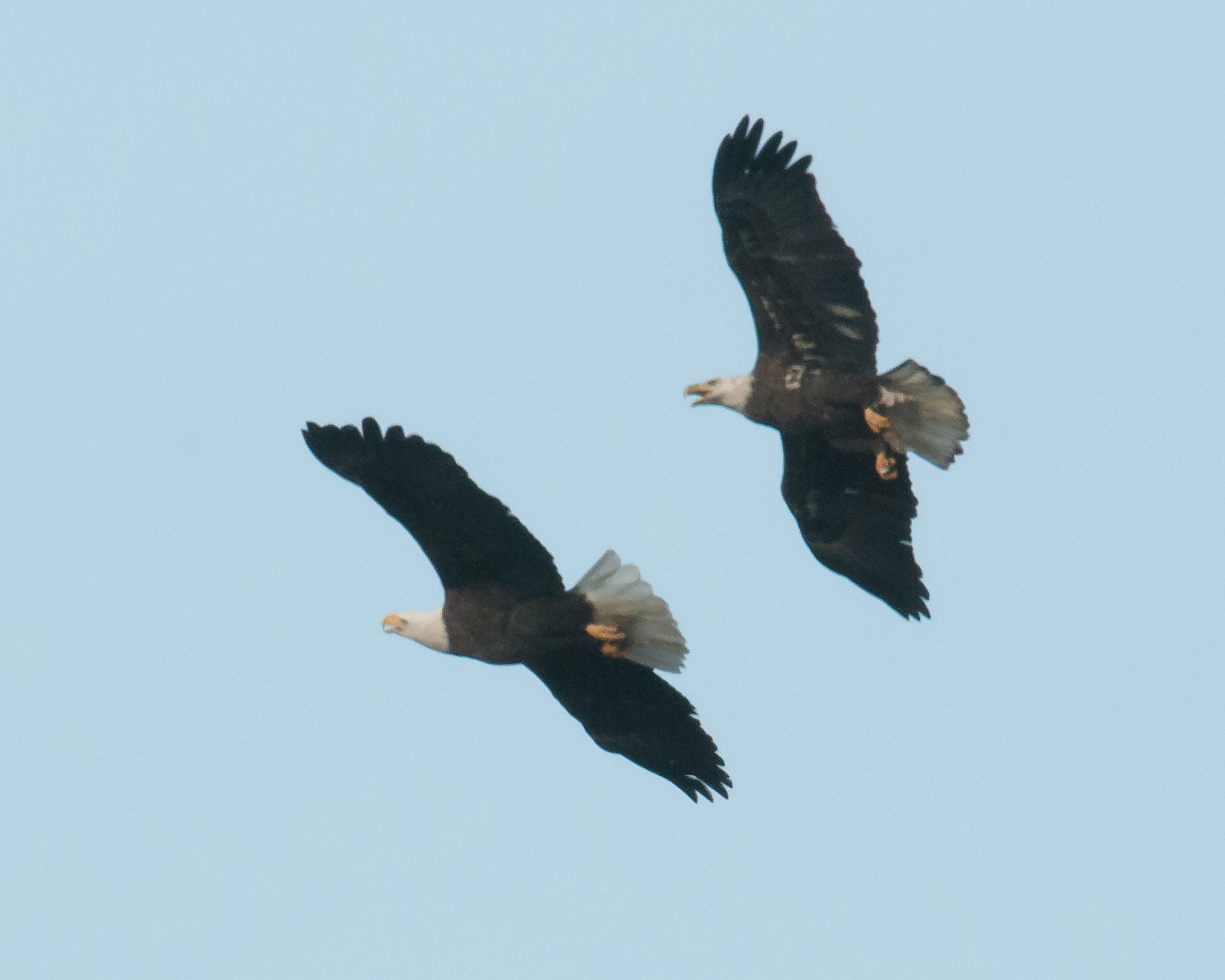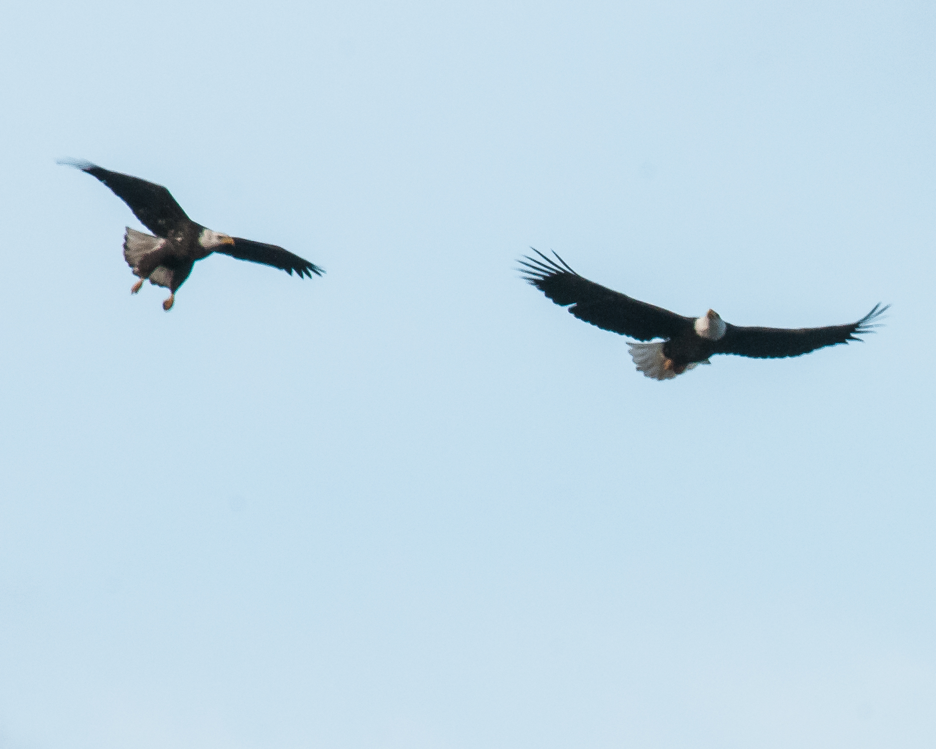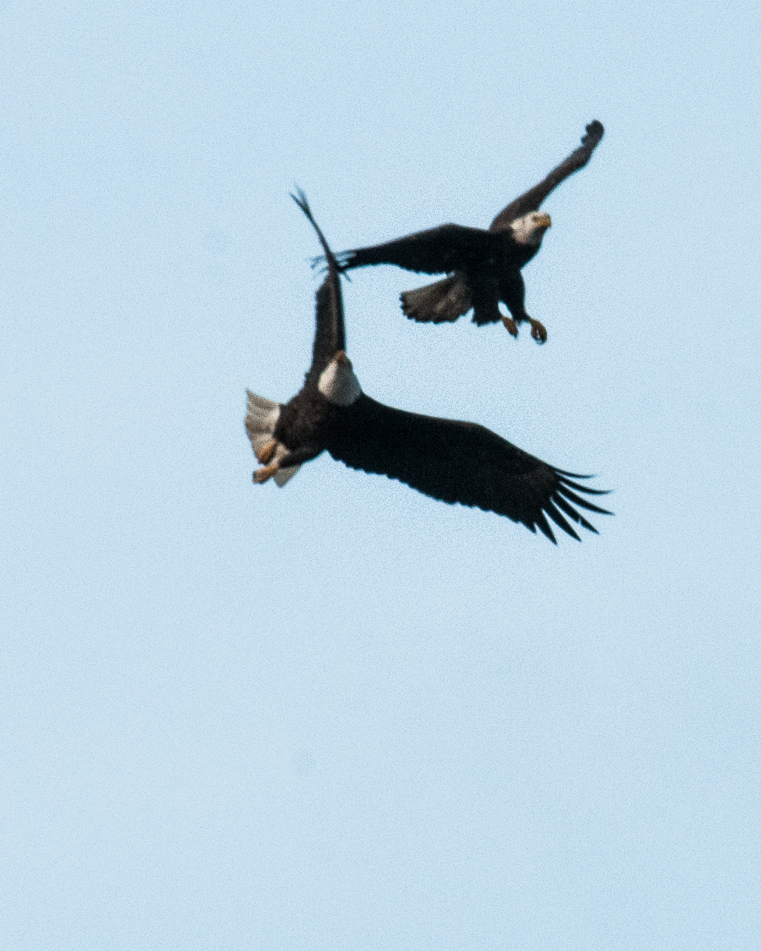 After a few days of warmth, the cold air is back, but the eagles are heating up the sky. Enjoy the sequence. And I put in some perched pictures, too.