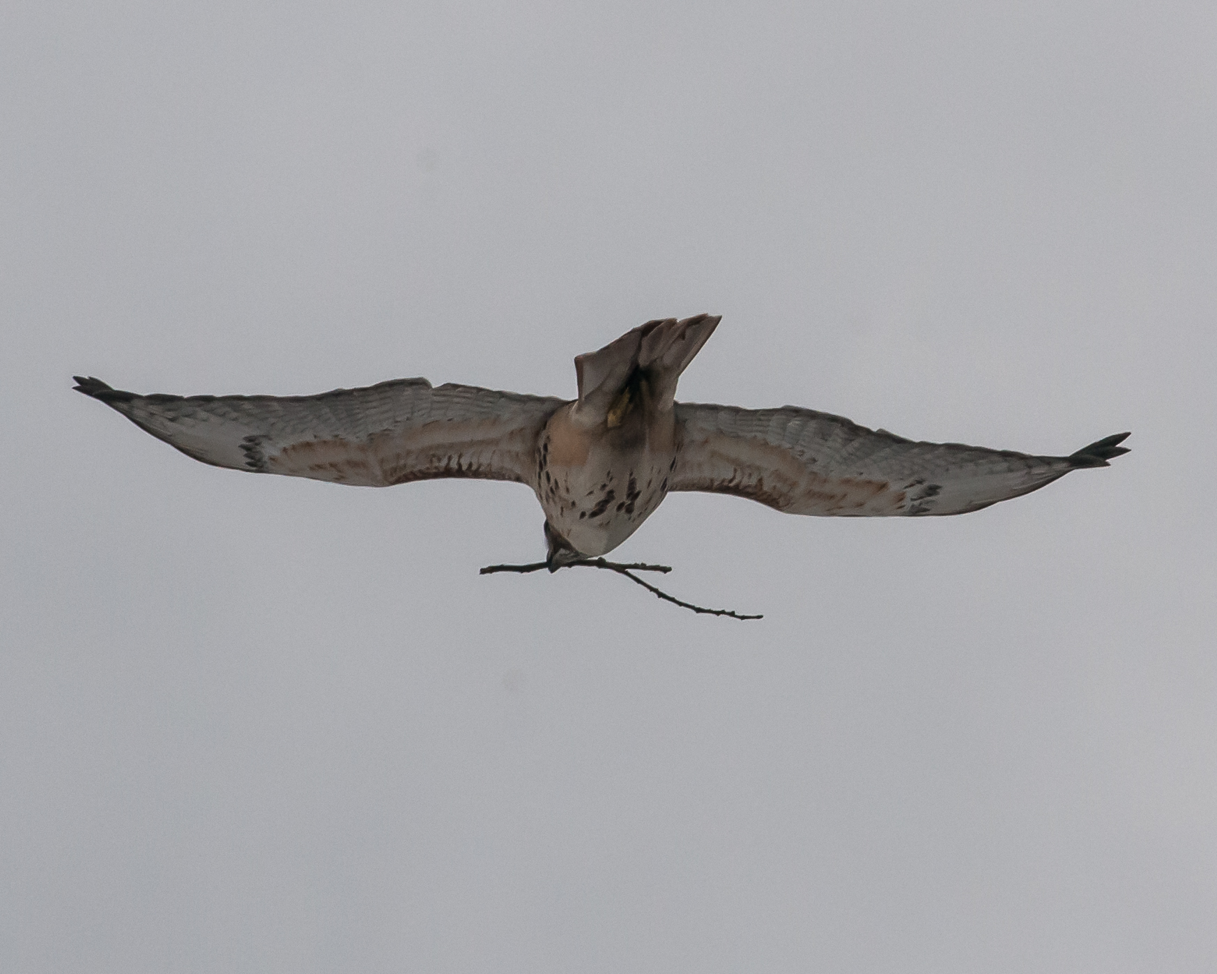 And ’tis the month of love and nest rebuilding. Our own pale male is setting up the nest for his mate.