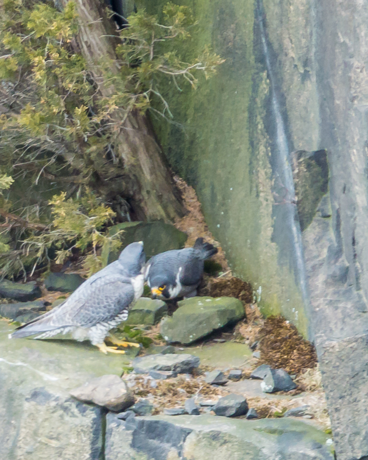The web cam peregrine eggs have begun to hatch and the birds here in the Northeast are well into their mating rituals. I am blessed to live along the Hudson River, especially at Easter, where I can see the birds in the wild and on man-made structures.