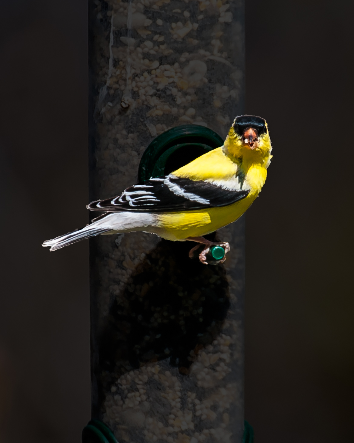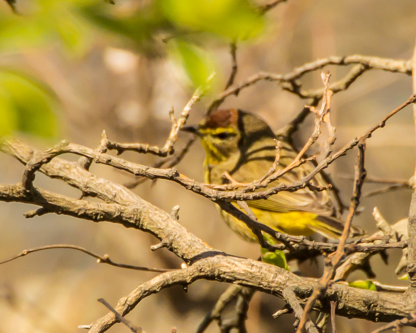 I usually take a reprieve from bird watching in late March and April before peregrine season gets into full swing. But I couldn’t resist getting a picture of a towhee, palm warbler, gorgeous goldfinch and displaying cowbird.