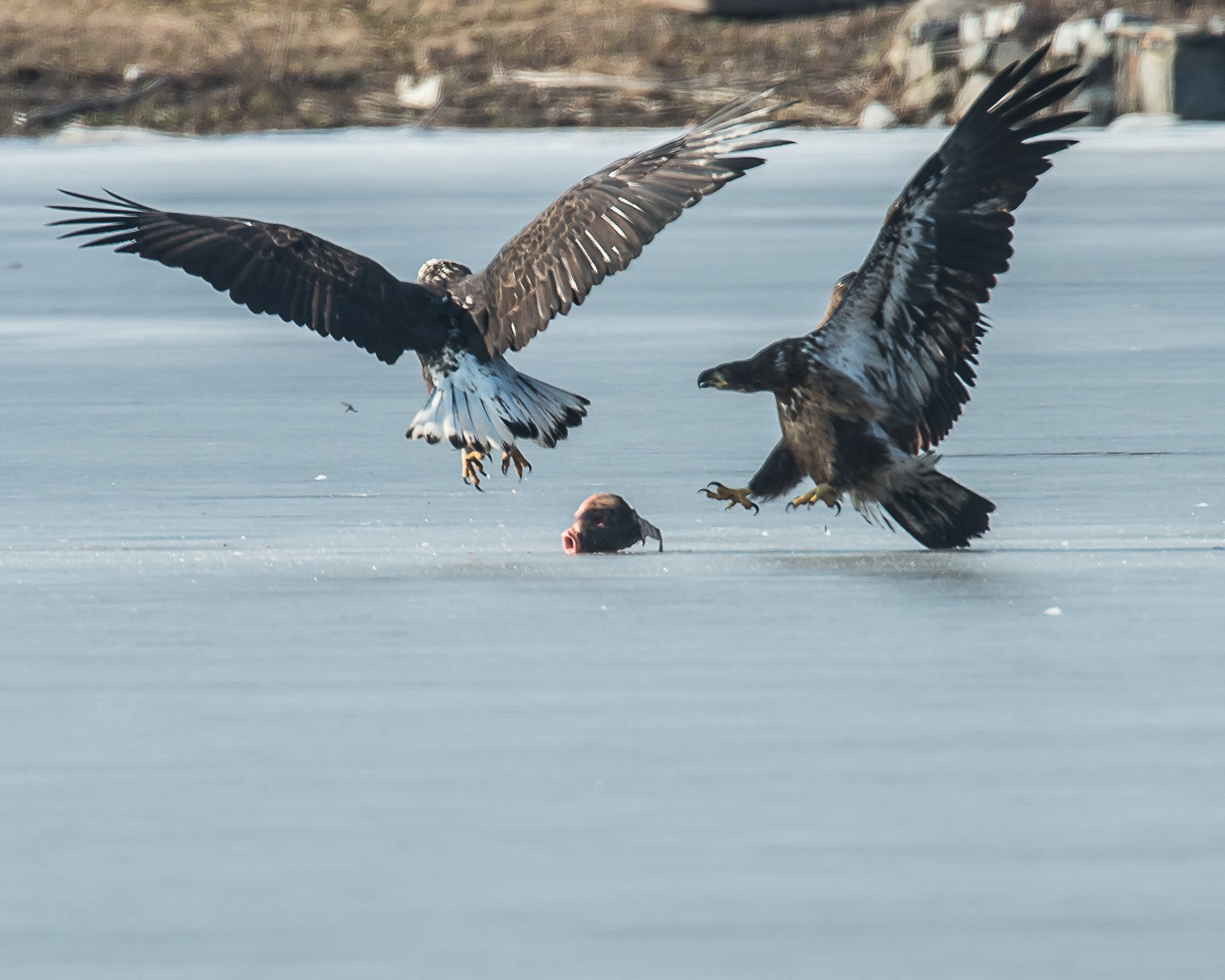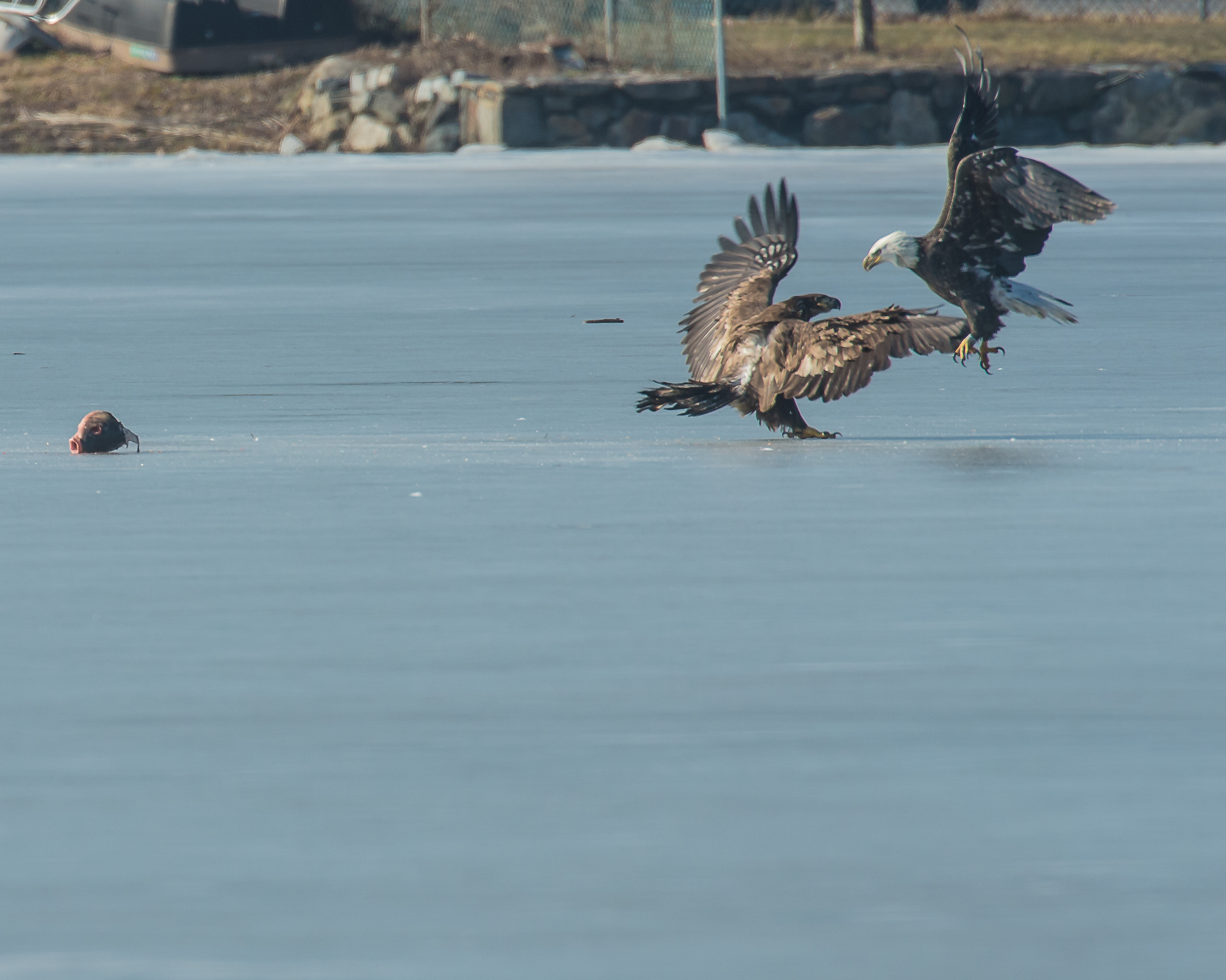 While making my eagle rounds on the Hudson River, I passed by Charlie and Karolyn who told me to get to Annsville Paddlesport Park quick. You can imagine what had happened previously. This adult beat out 6 to 8 other eagles for a few minutes anyway.