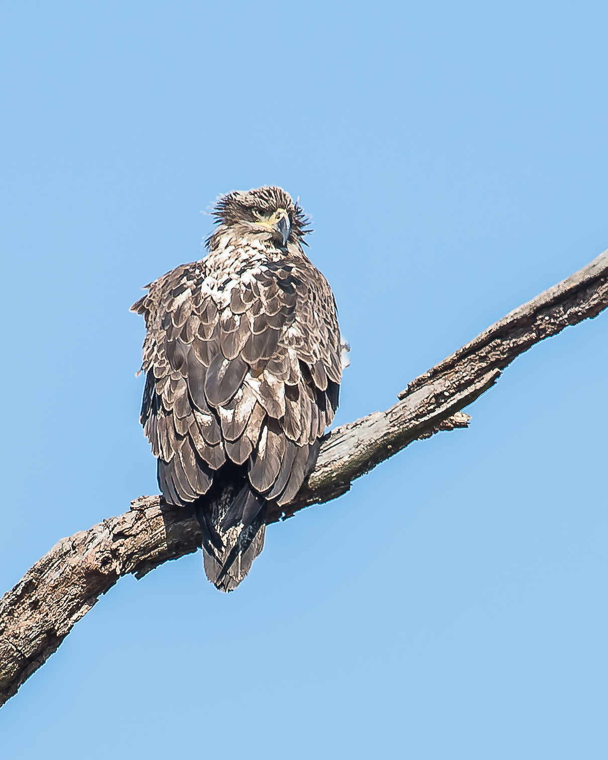 My first year eagle guy now has to wait for his sibling. Finally got the early bird, but not with a worm. Those darn flying tree sparrows…