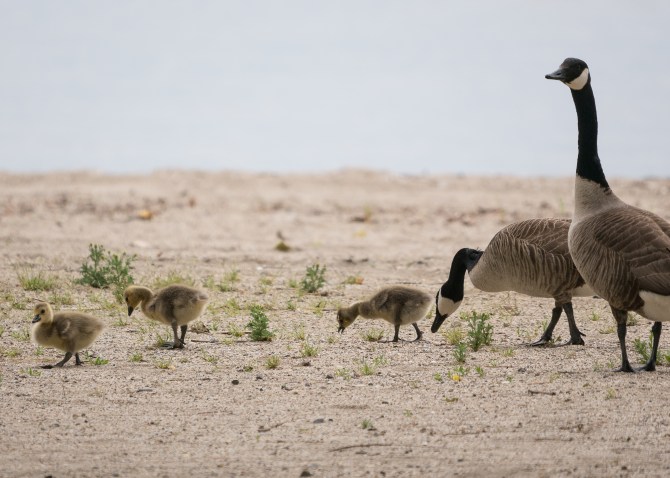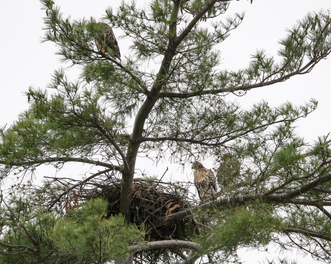 One just prays at least half of them survive. Our red-tailed hawk family is just about ready to expand their territory. Look out snakes and rats! The male dropped off a very small morsel and the eyases bawled him out. This is a sign that the youngsters are ready to take flight. Both adults have triangulated on nearby trees to keep an eye on this adventurous group. Mallard ducklings were out in force with their parents. Momma kept ten in tow while Dad guarded the pond. The goose family has not been so lucky. There were two goose families on the beach. One set had three goslings left and the other pair had only two. They waddled directly under the red-tail tree. I have seen the red-tails with a gosling or two being prepped. Sad. One goose pair at the Croton Boat Ramp are fairing well with their bagel diet. The other pair is only allowing the young to eat grass and bugs.