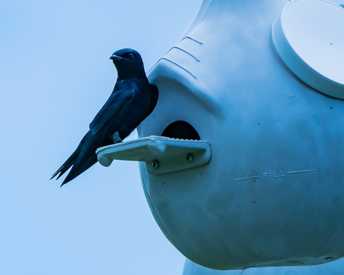 The heron symbolizes good luck, especially when fishing. According to Native American legend it is also a solitary, patient creature. Life has been filled with herons recently, along with a new bird, the purple martin.