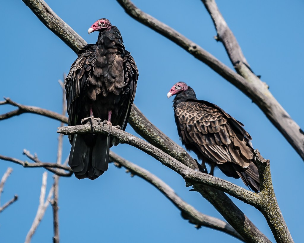What’s better than turkey vultures perched in a dead tree – a dozen goldfinches, clueless mockingbird, monarch butterfly feeding, baby sparrow waiting to be fed? It is definitely not skipper butterfly spider food.