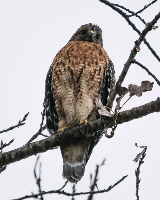 The regular birds are in their regular places. Featured image shows the resident red-tailed hawk helping with Project FeederWatch.