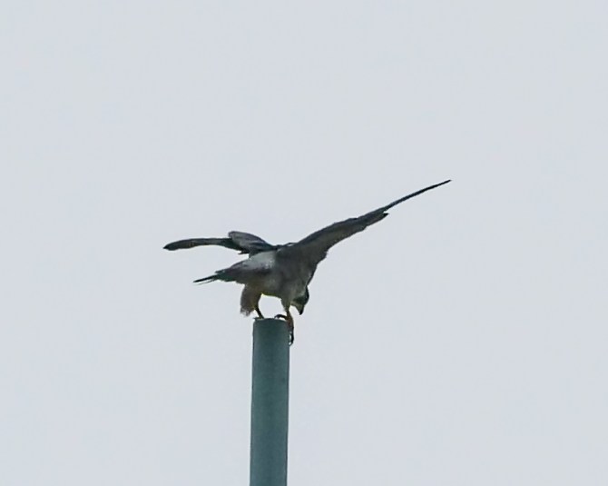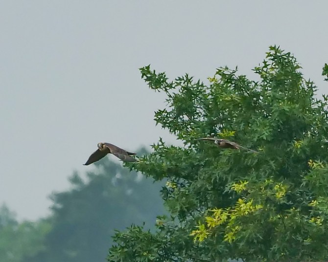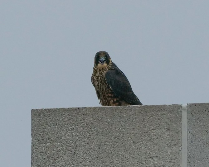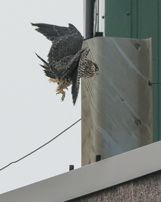I can’t seem to get away from the Jersey falcons. My yearly Rochester Falcon Watchers’ Weekend happened in Elizabeth, NJ this year. Cadence, hatched in 2015 in Rochester and pictured below as a juvenile, is now raising a family of four this year. Her brood is learning to fly and hunt. I do believe I saw or heard all four juvies at one time.