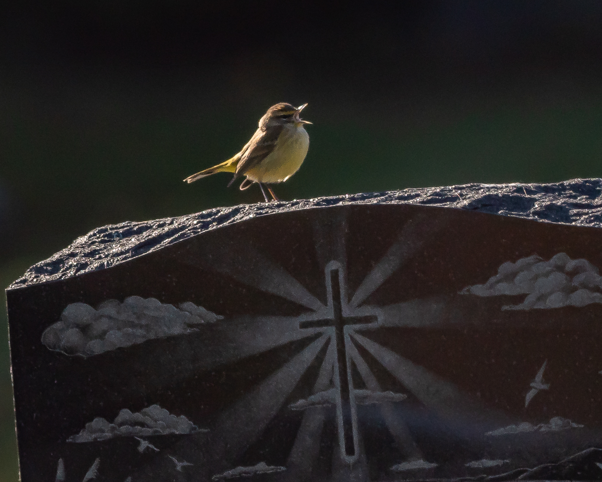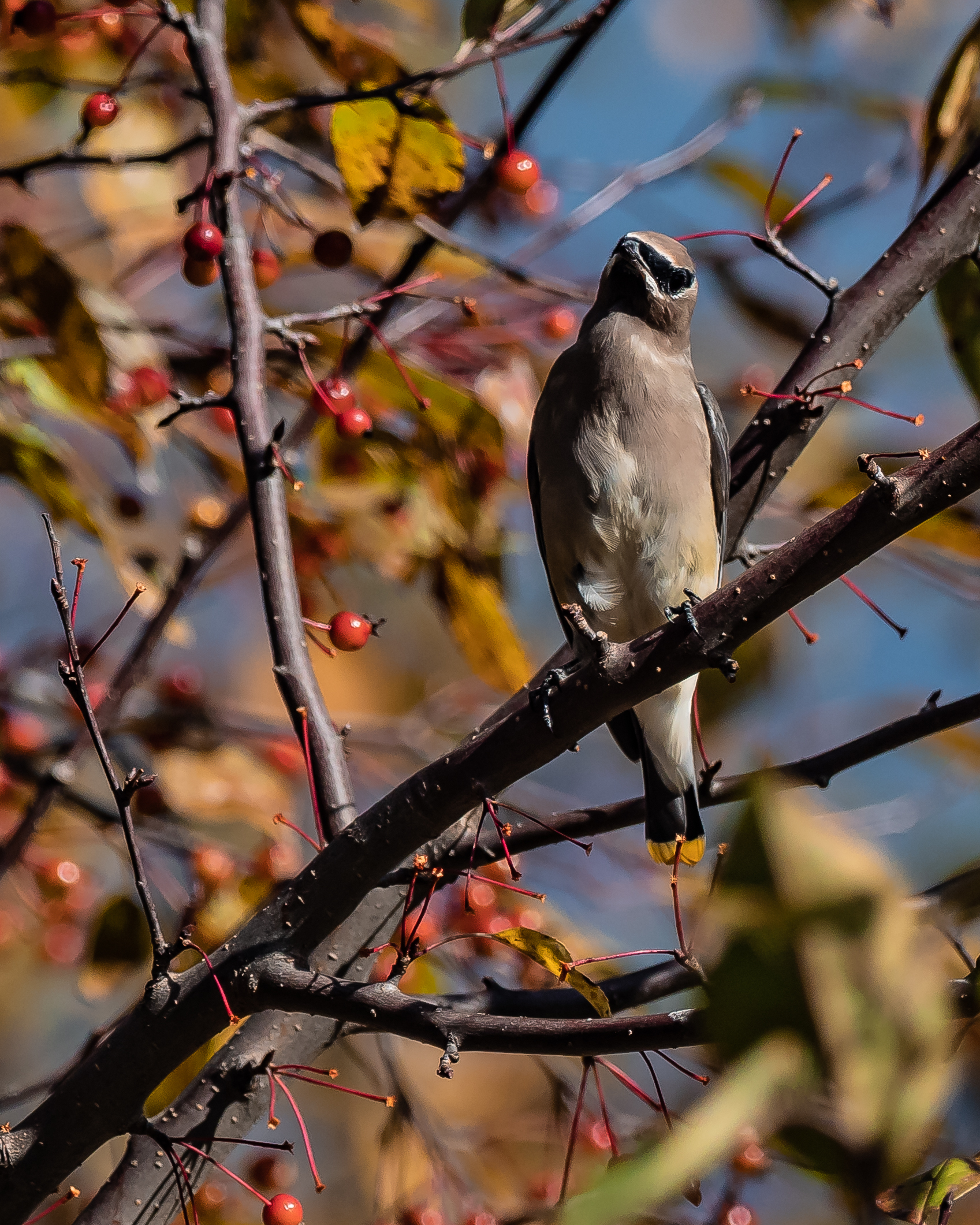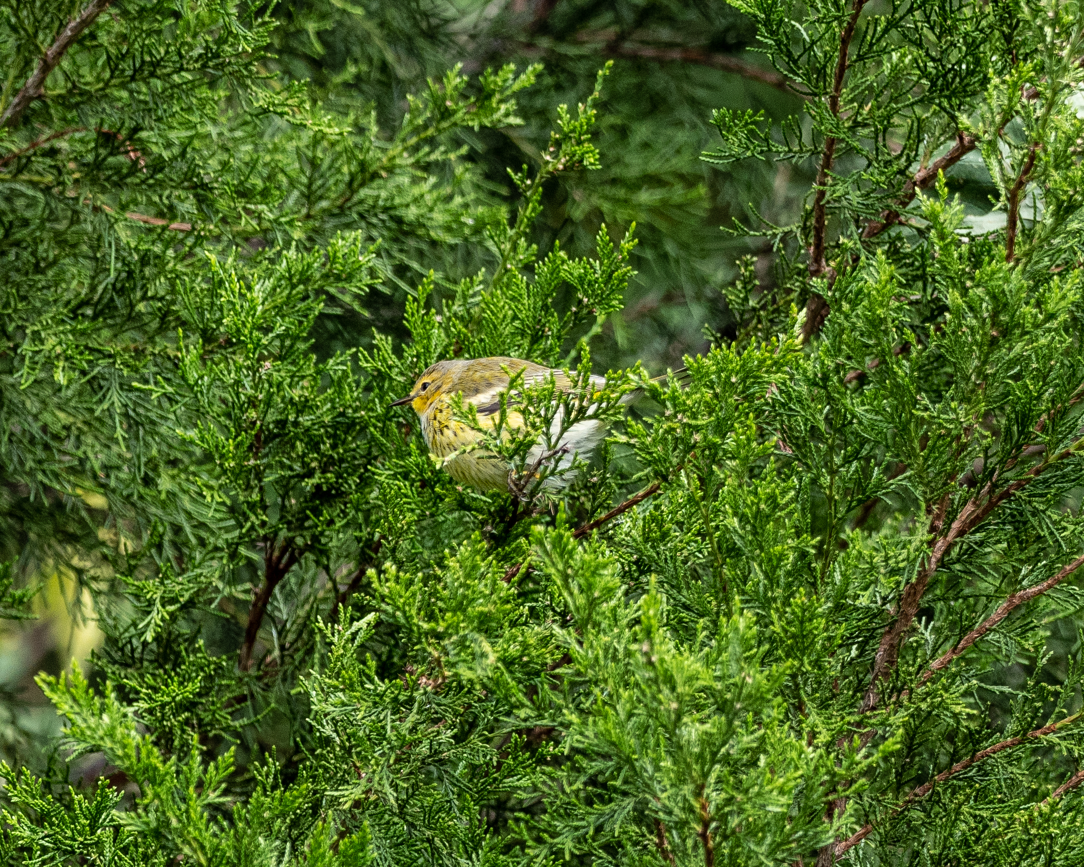 Cape May warbler migrating through the backyardCedar waxwing enjoying the last bites of FallEastern phoebe looking for bugsPalm warbler waking the dead